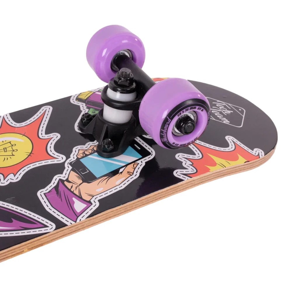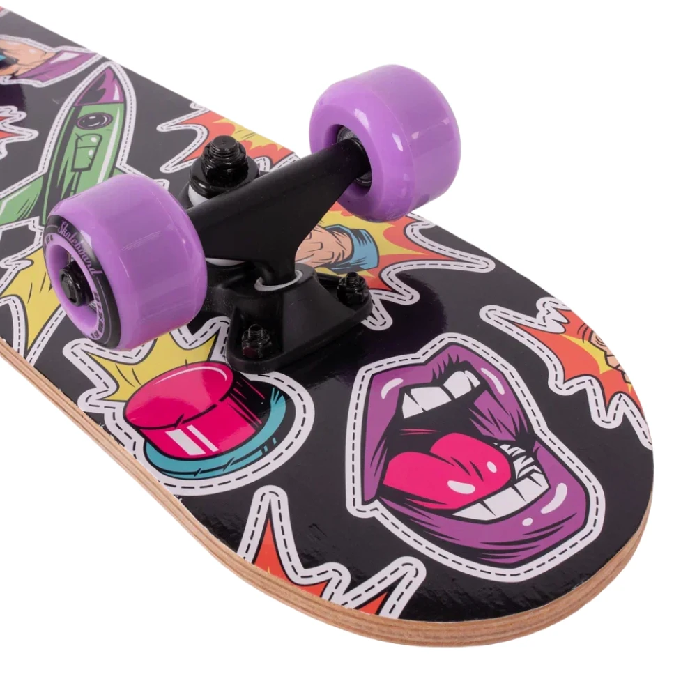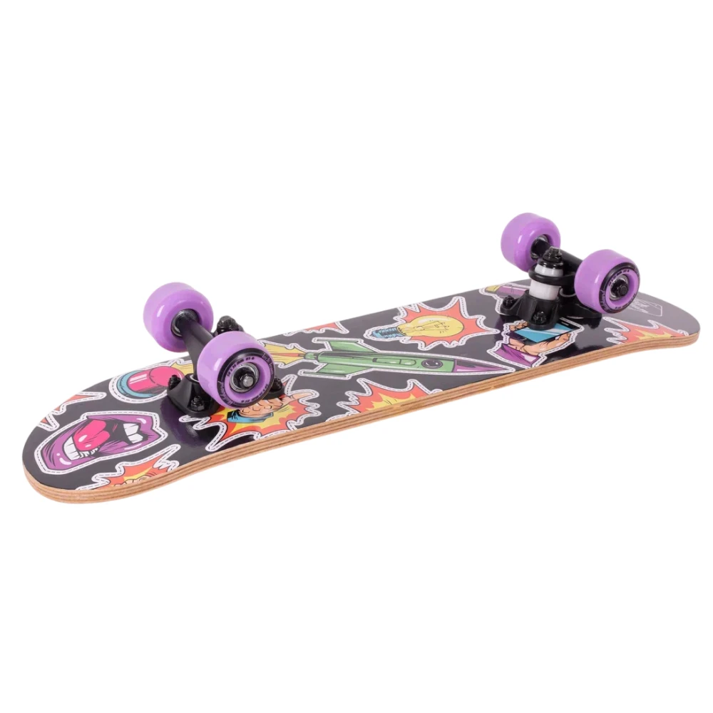 Скейтборд Tech Team Profi 2024 фиолетовый - это смесь классического стиля и современных технологий. Колеса из полиуретана размером 50x36 мм с жесткостью 85А обеспечивают стабильность и динамичность в движении. Дека, выполненная из 9 слоев высококачественного китайского клена, с размерами 24”х6”, обеспечивает уверенность в каждом движении. Черная шкурка 80AB на верхней части деки гарантирует отличное сцепление с ногой, а нижняя часть, украшенная ярким принтом в фиолетовых тонах, воплощает в себе дух свободы и бунтарства. Подшипники ABEC 5 обеспечивают плавное и быстрое движение. Двойной концевой загиб деки (Double Kick) позволяет легко выполнять сложные трюки. Этот скейтборд - ваш верный спутник в городских приключениях.