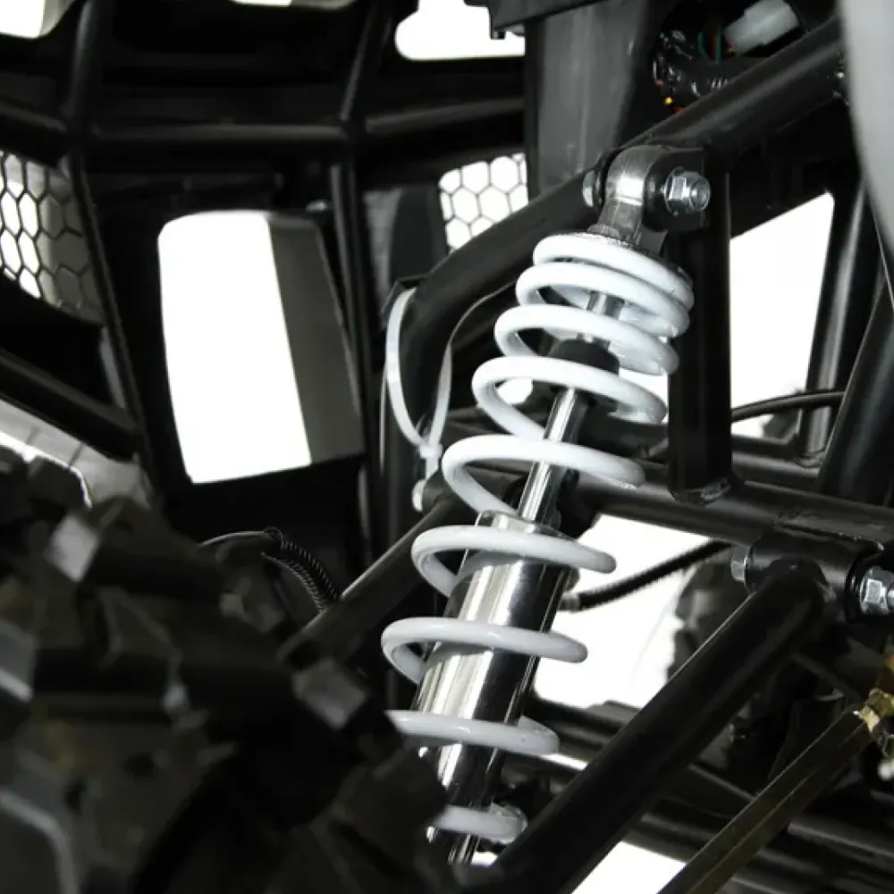 Конструкция из стали обеспечивает прочность и устойчивость при активной эксплуатации. Вес 200 кг делает квадроцикл относительно лёгким для данного класса техники, облегчая маневрирование и транспортировку. Колёса 10 дюймов обеспечивают хорошую амортизацию и комфорт даже на неровных участках.