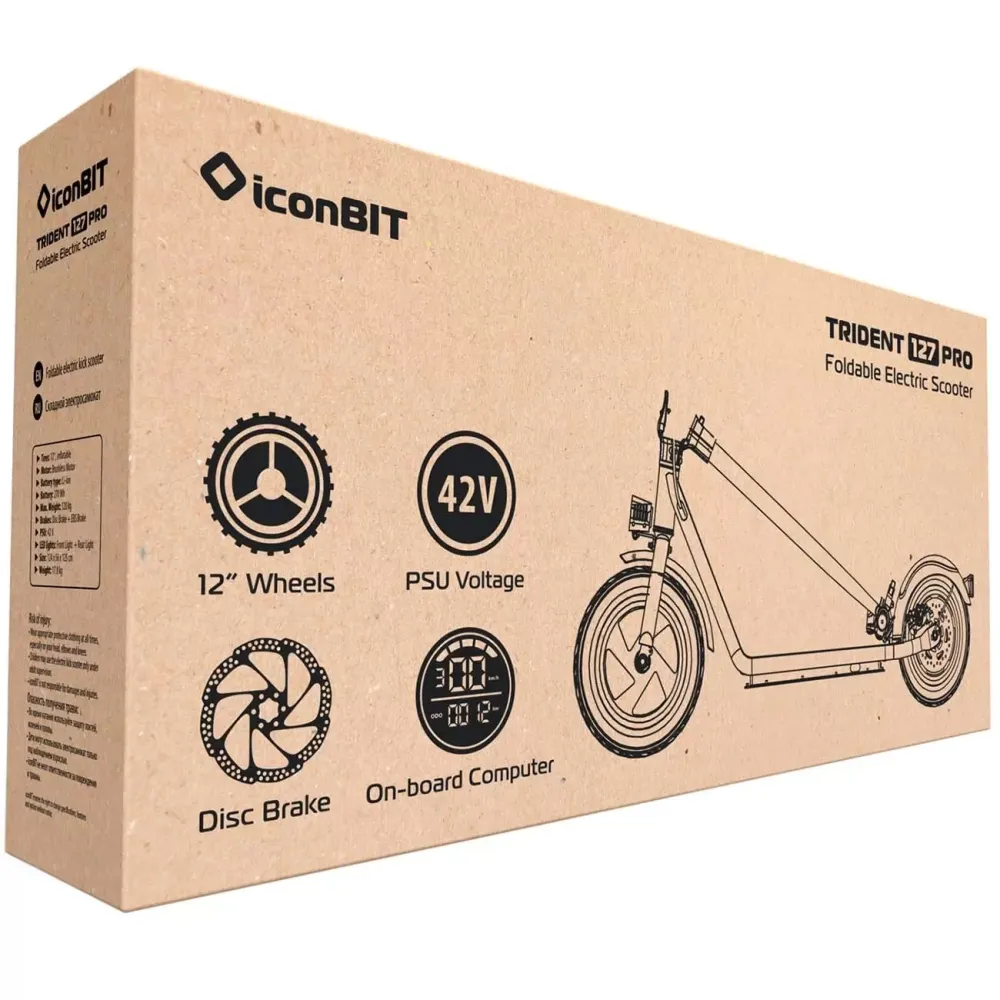 Диаметр колеса составляет 12 дюймов, что обеспечивает устойчивость и плавное движение на различных типах дорог. Независимо от того, на какой поверхности вы находитесь, ICONBIT TRIDENT 127 PRO гарантирует безопасность и комфорт для вас.