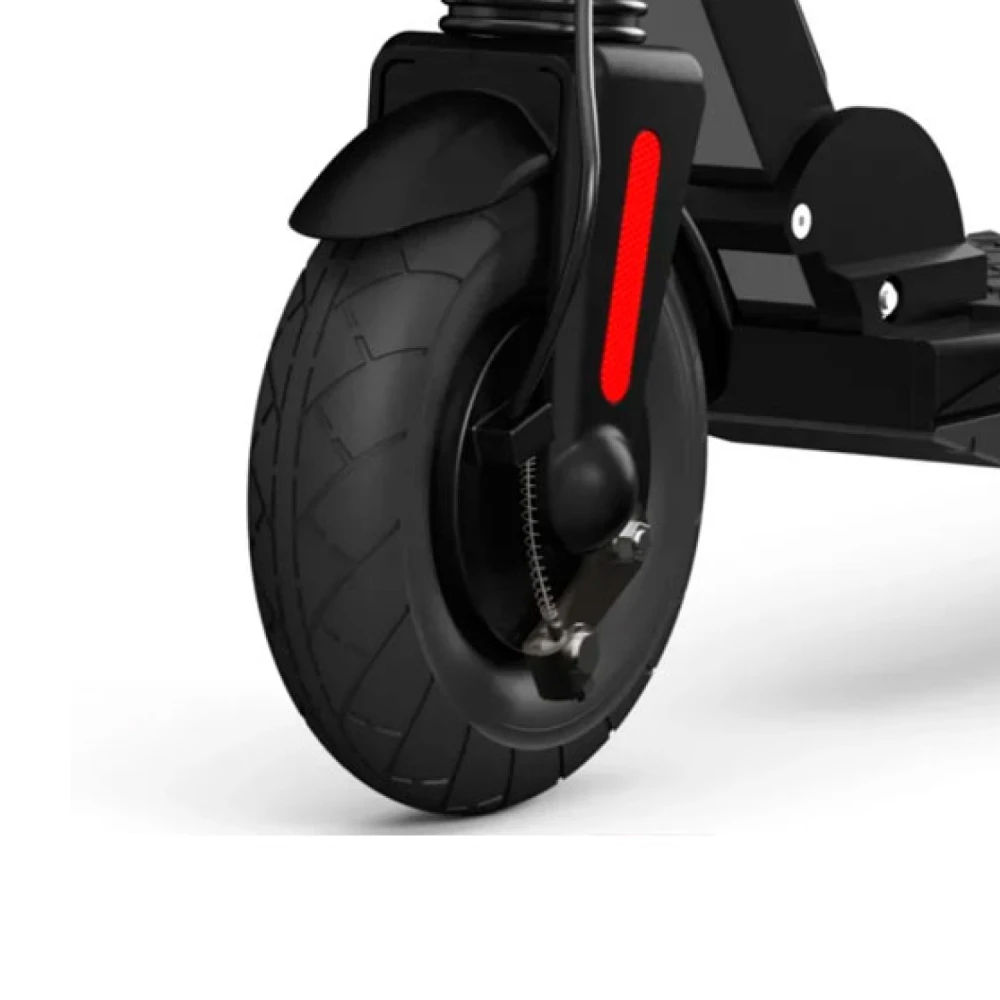 Качественная тормозная система, отличные показатели мощности сделали характеристики резвыми. Внутренняя часть изолирована плотным современным материалом, имеется аквазащита и дренажные отсеки с отверстиями. Электросамокат не боится езды в непогоду. При необходимости ездок может сделать модель компактной сложив ее одним движением руки.