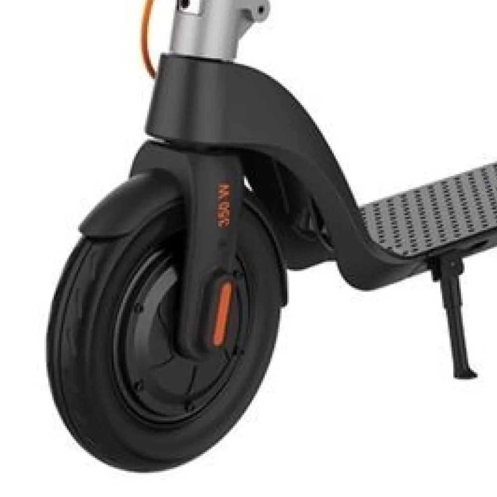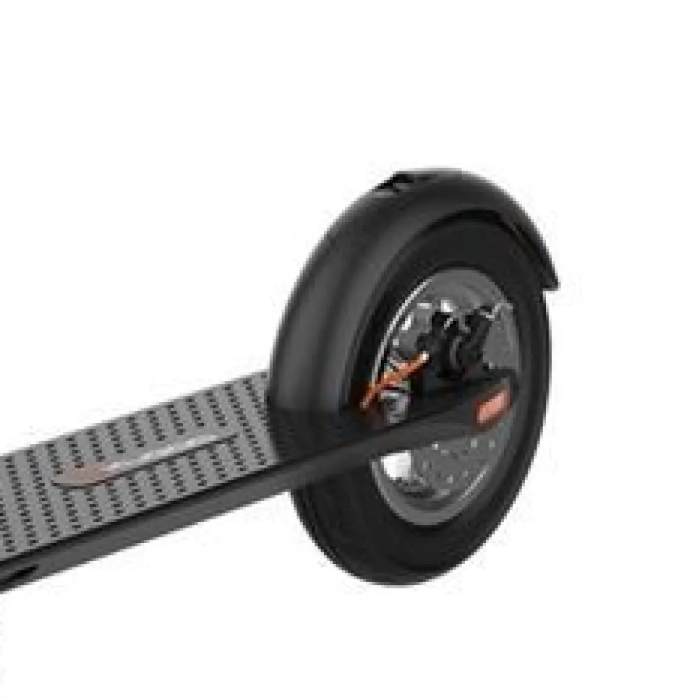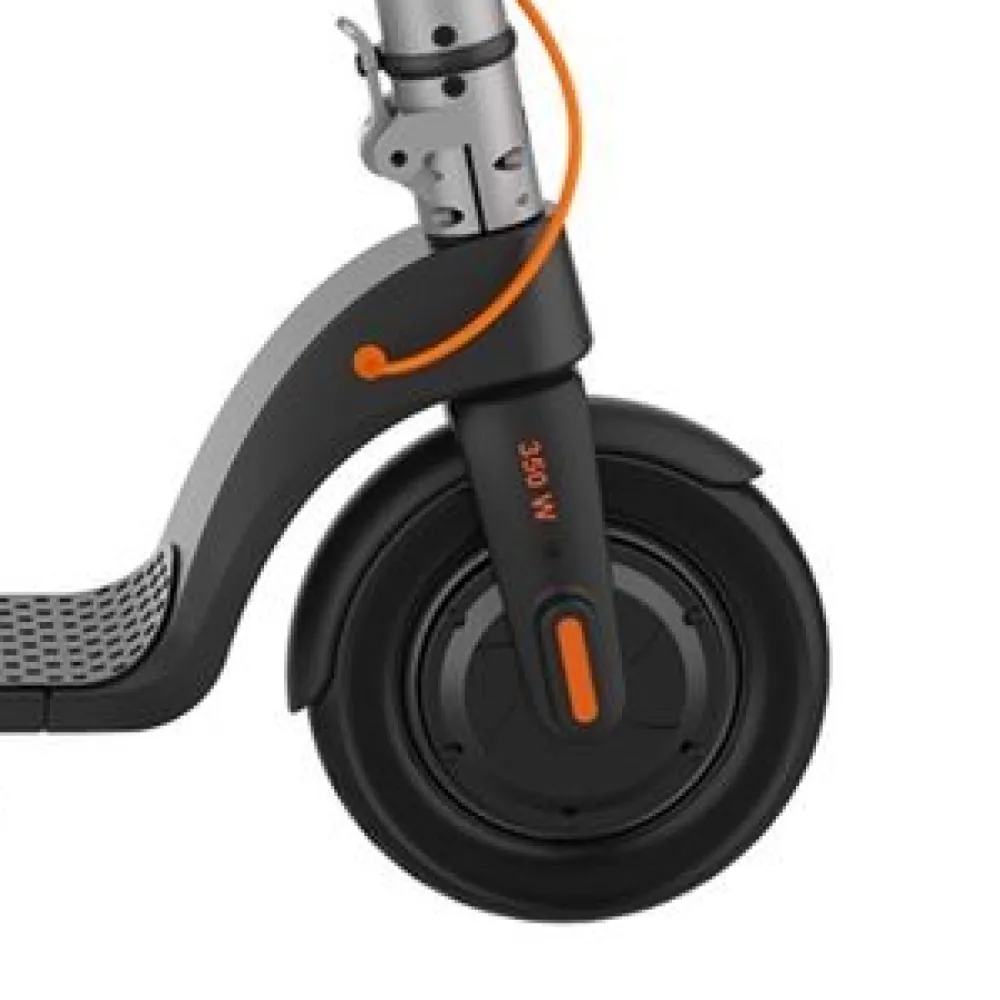 Мощность электродвигателя составляет 350 Вт, это позволяет электросамокату развивать скорость до 30 км/ч.