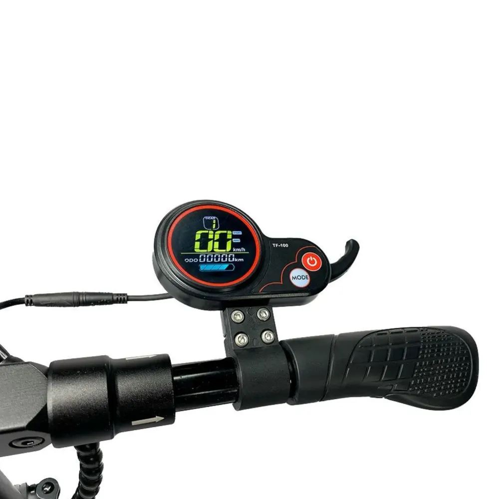 Конструкция каркаса основательная, съемное, мягкое сидение можно отрегулировать по высоте, оно оснащено дополнительными амортизаторами. Руль складывается и регулируется по высоте. На нем установлен рычаг заднего тормоза, звуковой сигнал, включатель световой подсветки. Внешнее освещение состоит из фары впереди, стоп-сигнала сзади и по бокам деки светодиодной подсветки. С правой стороны руля крепится бортовой компьютер.