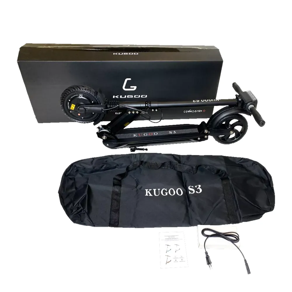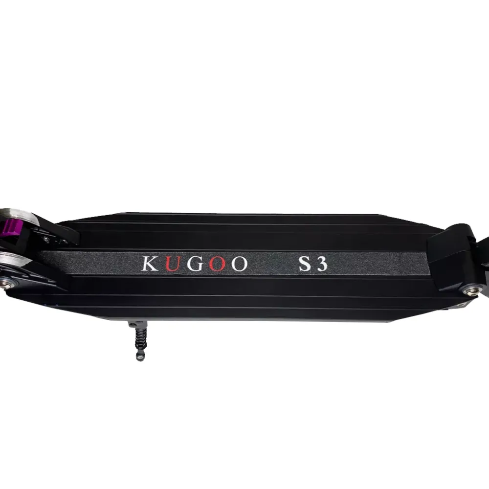 Kugoo S3 оснащен электродвигателем 350 Вт, мотор-колесо установлено впереди. Агрегат развивает максимальную скорость движения до 27 км/ч, имеет аккумулятор емкостью 6 А*ч. На одном заряде батареи проезжает около 26 км пути. Для увеличения дальности хода можно приобрести дополнительный аккумулятор, это экономит время. Пока один аккумулятор работает, второй можно установить на зарядку.