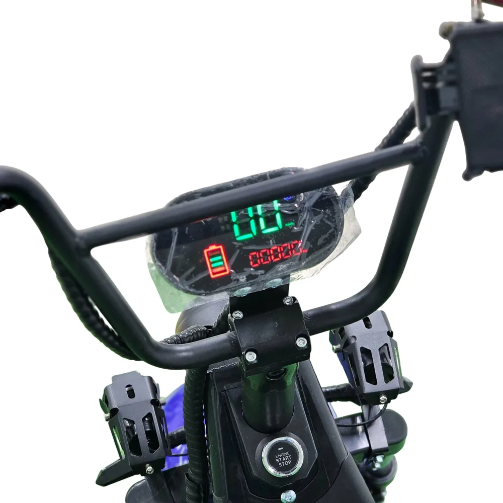 Электроскутер Citycoco GT X7 PRO Синий — это настоящая находка для любителей активного отдыха и динамичного передвижения. Оснащённый мощным двигателем в 2000W и аккумулятором ёмкостью 20 Ah, он способен преодолеть до 50 км на одном заряде, разгоняясь до 45 км/ч. Этот скутер создан для приключений как в городе, так и на бездорожье благодаря своим широким внедорожным шинам и полной амортизации, которые обеспечивают плавный ход даже по неровным поверхностям.
