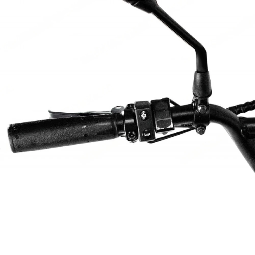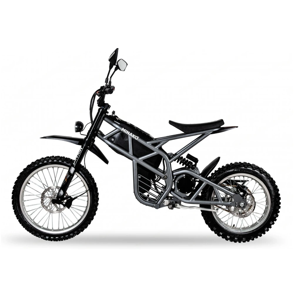 Электроскутер Minako CROSS в черном цвете визуально напоминает крутую технику, современный мопед. Привлекает внимание большая светодиодная фара и мощная рама. Дизайн подчеркивает лучшие технические характеристики. Купить электровелосипед на выгодных условиях, остаться довольными приобретением предлагает наш интернет-магазин. Техника оснащена мощным мотором на 3000 Вт, способными выжимать скорость до 100 км/час. Наличие педалей допускает езду в смешанном режиме. Емкости батареи (20000МАч) достаточно на преодоление дистанции до 100 км. Батарея размещена на раме, в защитном боксе, исключающим повреждение АКБ. С такими параметрами потребуется покупка защитных аксессуаров для ездоков. Колеса с агрессивным протектором обещают отличный накат и сцепляемость с разными видами покрытия. Допускает езду по ровной и пересеченной местности. Небольшое анатомическое седло, удобная рулевая часть с максимальным функционалом увеличивают уверенность райдера в собственных действиях. Информационный дисплей показывает важные для ездока параметры, исключает непредвиденные ситуации в виде разрядк