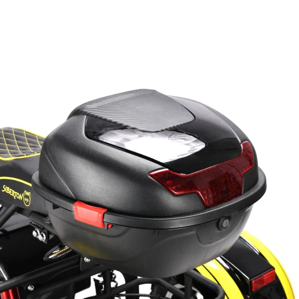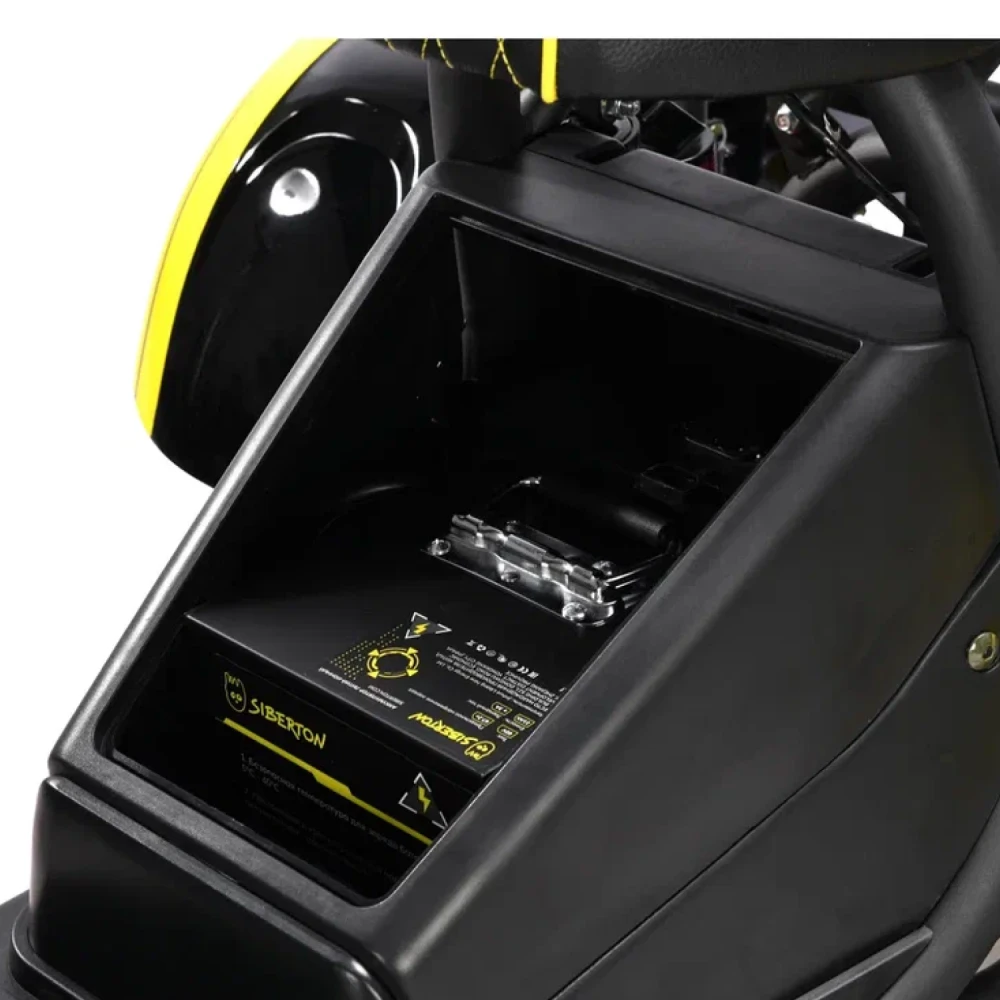 Электроскутер Siberton PRO Trike – это инновационное транспортное средство, сочетающее в себе мощь, практичность и надежную конструкцию, выполненную из высококачественной стали. Благодаря продуманной трехколесной компоновке, данная модель гарантирует стабильность и управляемость даже в условиях городской суеты, а клиренс в 21 см обеспечивает уверенное преодоление неровностей дорожного покрытия.Сердцем устройства является двигатель мощностью 3000 W, который позволяет динамично стартовать и уверенно поддерживать скорость, обеспечивая максимальный пробег до 60 км на одном заряде. Поддерживаемый аккумулятором типа Li-ion с емкостью 21 Ah и рабочим напряжением 60 V, этот скутер быстро восстанавливает заряд за около 7 часов, что делает его идеальным для ежедневного использования.Система безопасности представлена надежными дисковыми гидравлическими тормозами, которые гарантируют своевременное и точное торможение в любых ситуациях. Дополнительное оснащение, включающее поворотники и сигнализацию, повышает видимость на дороге и обеспечивает максимальную защиту водителя.Особое внимание уделено комфорту: спереди используются масляные амортизаторы, а сзади – комбинация масляной системы с пружинной подвеской, что позволяет минимизировать влияние дорожных неровностей на качество поездки. С общей массой 106 кг и компактным размером, электроскутер Siberton PRO Trike удачно сочетает в себе прочность и функциональность, делая его надежным выбором для тех, кто ценит комфорт, мощность и безопасность в одном устройстве.