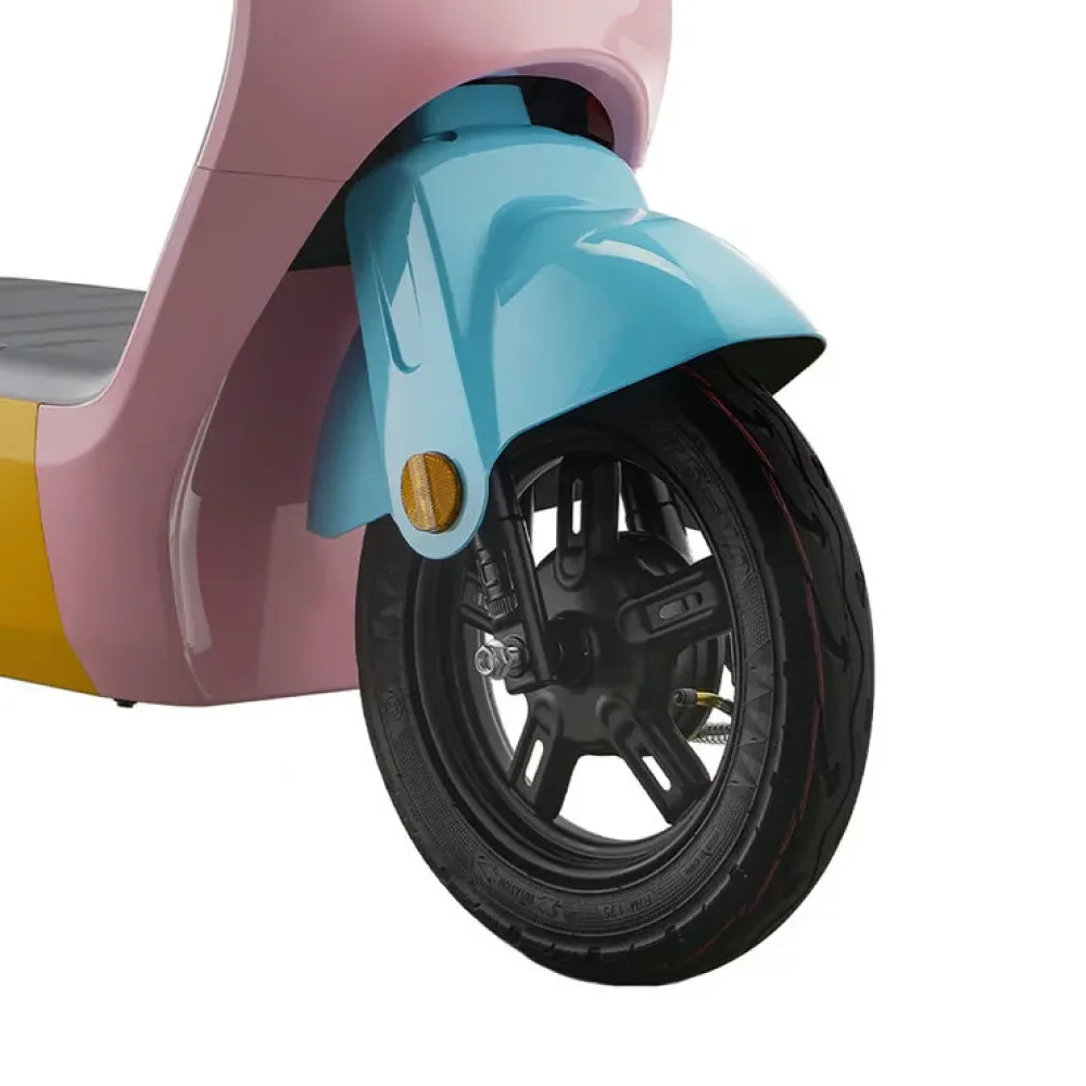 Бескамерные надувные колеса с вакуумными покрышками размером 2.75-10см (10 дюймов) обеспечивают плавное и комфортное движение по дорогам различного качества.С гидравлической передней подвеской, пружинной задней подвеской и способностью преодолевать склон холма до 15°.
