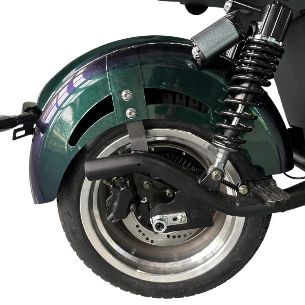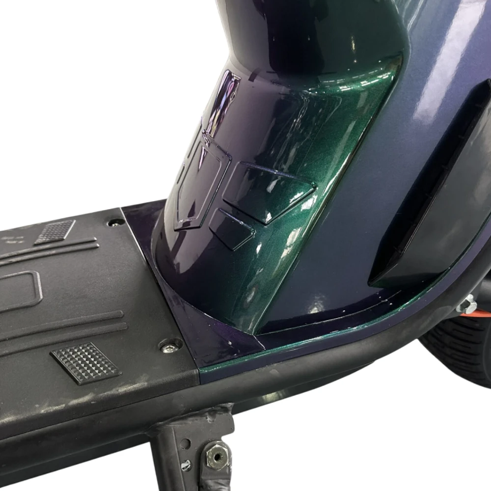 Скутер оборудован двумя независимыми электродвигателями по 1950 Вт каждый, что в совокупности даёт 3900 Вт тяги. Это обеспечивает уверенное движение, разгон до 60 км/ч, отличную устойчивость и возможность преодолевать подъёмы до 35°.