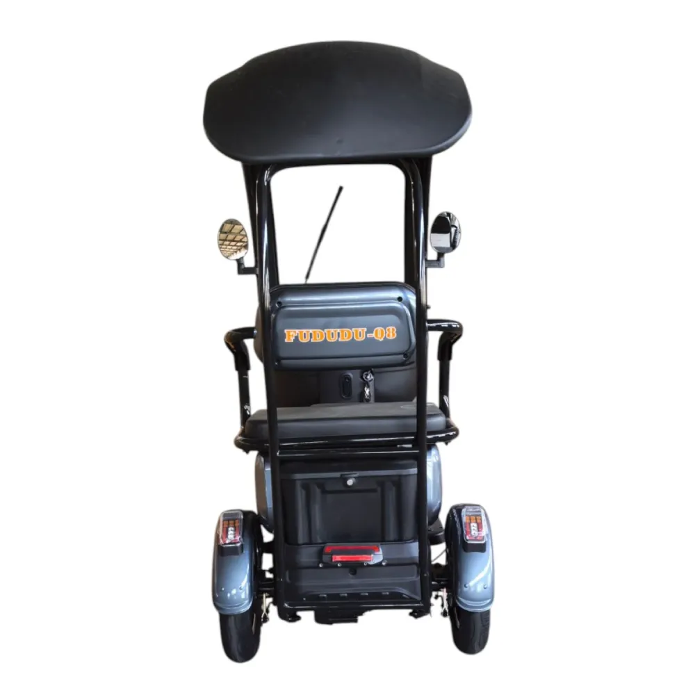 Fududu Q8 — трёхколёсный электротрицикл с задним приводом и мощным мотором 1000 Вт. Занимает уверенное место в сегменте городских трехколесных электросредств благодаря сочетанию практичности, мощности и безопасности.