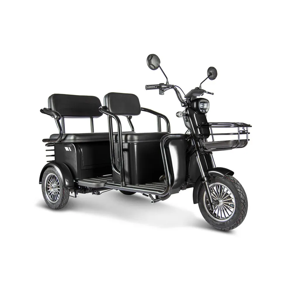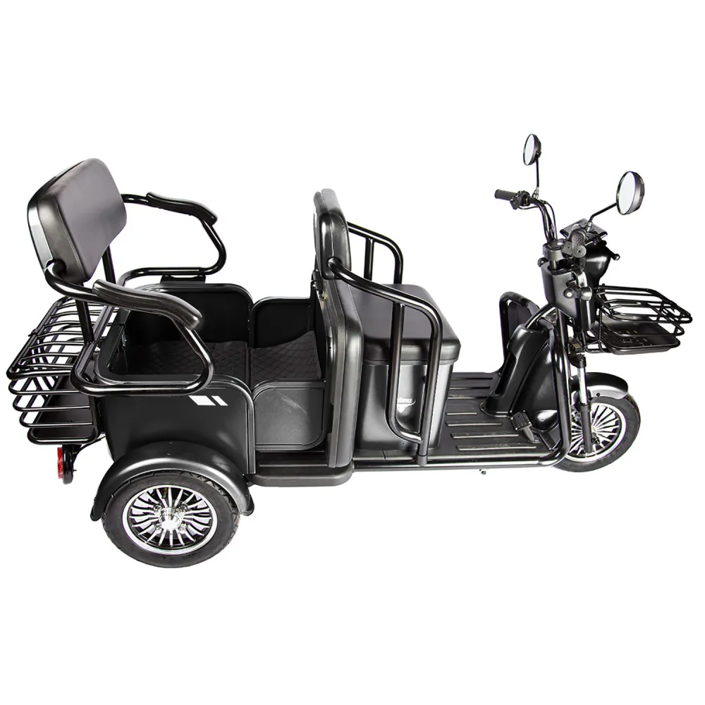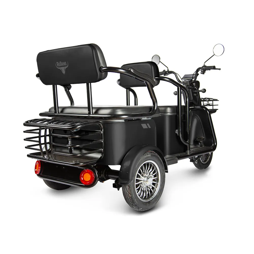 Электротрицикл Rutrike Экипаж – отличная новинка от производителя rutrike. Трициклы экипаж оснащены и адаптированы под эксплуатацию в любых погодных условиях. В новых моделях трицикла rutrike конструкция оснащена стальной рамой, грузоподъемностью до 150кг и весом 110 кг созданы максимальные условия для комфорта и безопасности. Электротрициклы rutrike экипаж востребованы на отечественном рынке и райдерами из СНГ. Купить Электротрицикл Rutrike Экипаж выгодно, выбрать хорошую модель без переплат поможет сотрудничество с нашим интернет-магазином. Трицикл оснащен электромотором мощностью 800 Вт, способный с комфортом развить скорость до 25 км/ч и преодолеть расстояние до 30 км. Модели экипаж пассажирского тс считаются одними из самых удобных и комфортных. Электротрициклы rutrike обладают анатомическими мягкими сиденьями в 2 ряда. Изучить более подробно характеристики новых моделей от производителя rutrike, получить бесплатную консультацию поможет наш интернет-магазин.