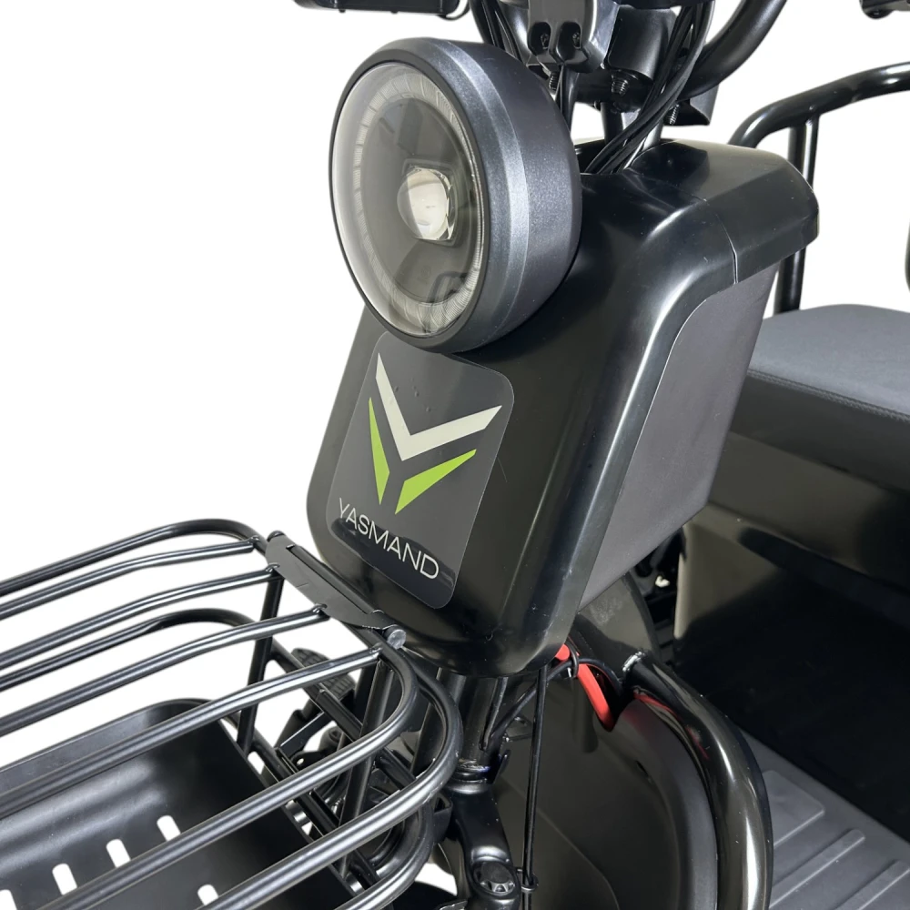 Yasmand R12 — доступный трёхколёсный электротрицикл с простым функционалом. Хорош для недолгих городских поездок на 30–40 км и хозяйственных задач.