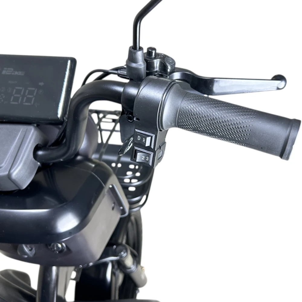 В стандартной комплектации есть зеркала, корзина, фара, стоп-сигналы и поворотники. LCD-дисплей показывает заряд, пробег и скорость, что делает поездки удобнее.