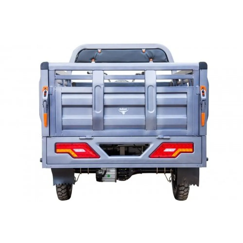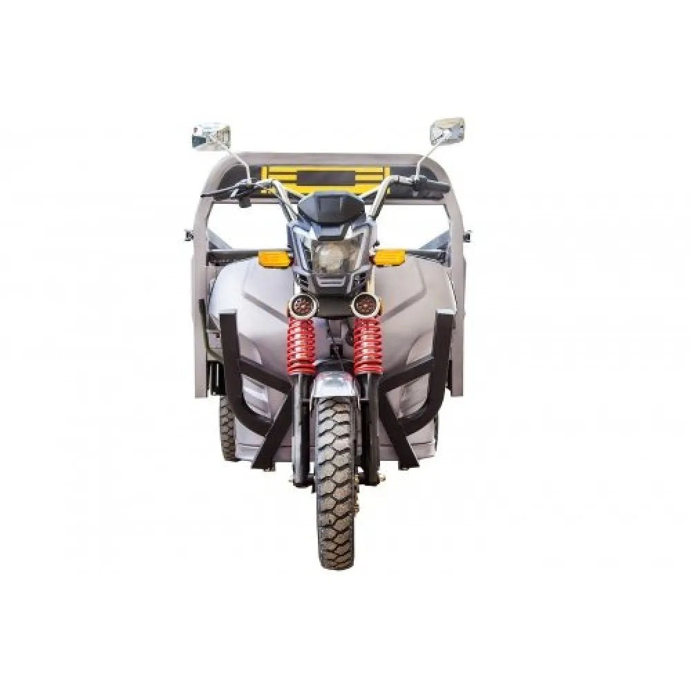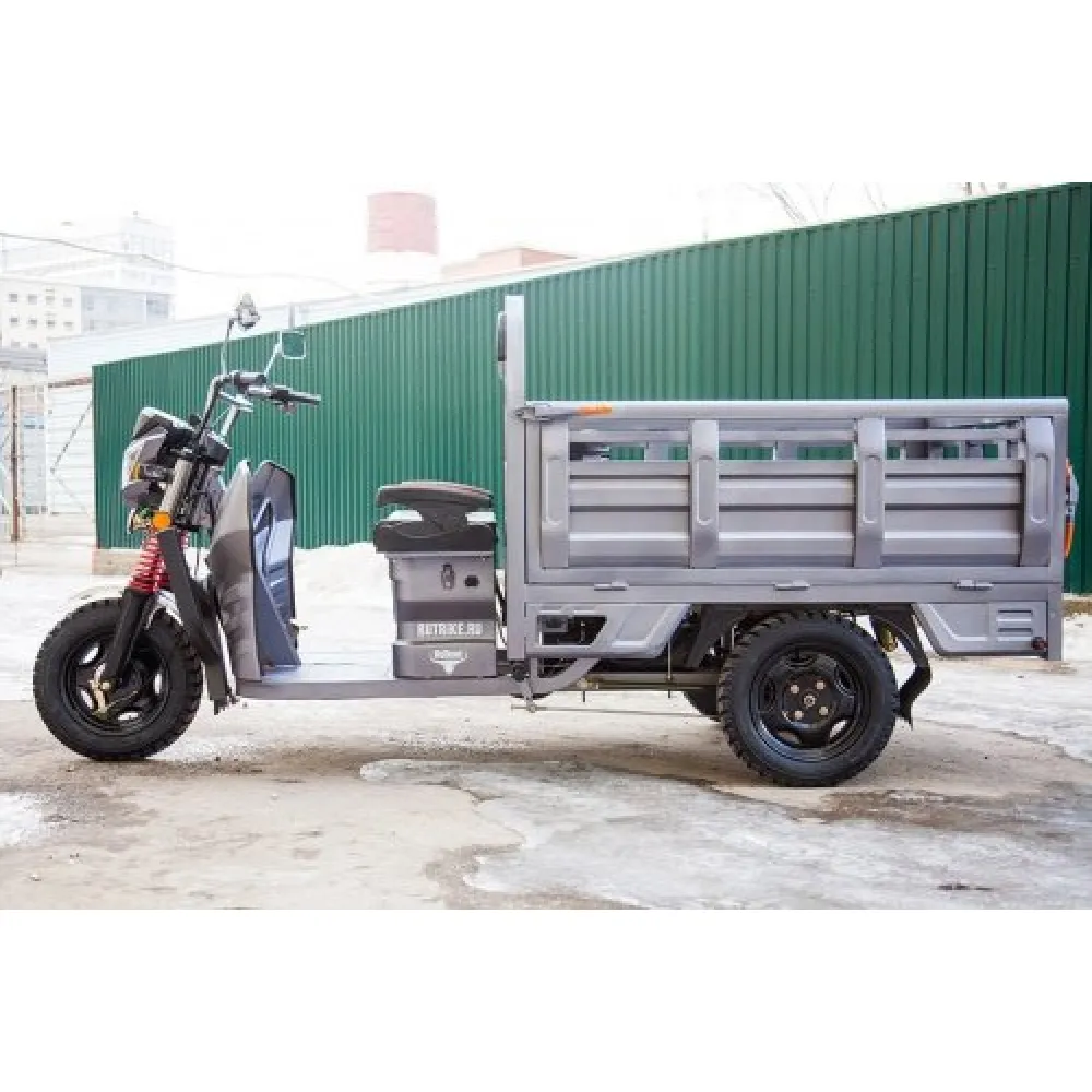 Повышенное удобство и комфорт являются приоритетными для производителя. Фирменная тормозная система представлена надежными передними и задними тормозами барабанного типа. Конструкция прочная, имеет усиленную раму для большей грузоподъемности до 1000 кг. Электротрицикл имеет резиновые накладки на руле для лучшего размещения и езды без дискомфорта. Модель оснащена брендовым двигателем мощностью 1000 Вт. Улучшенные показатели позволяют развивать максимальную скорость до 25 км/час. Емкий аккумулятор позволяет преодолевать расстояние на одном заряде 80 км. Преимущества транспортного поколения несомненно оценят старшее поколение.