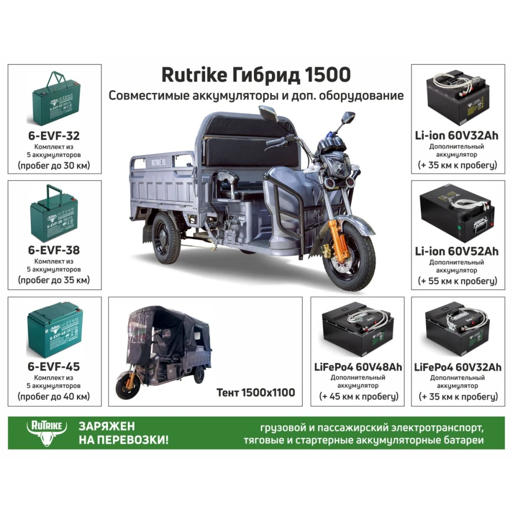 Грузовой электротрицикл Rutrike Гибрид 1500 60V1000W в синем цветовом оттенке – лучшая техника по приемлемой стоимости появилась в продаже! Торопитесь с оформлением заказа. Товар представлен ограниченным количеством! Для оформления заказа и покупки товара по цене производителя предлагаем связаться с нами по телефону или в онлайн-режиме.