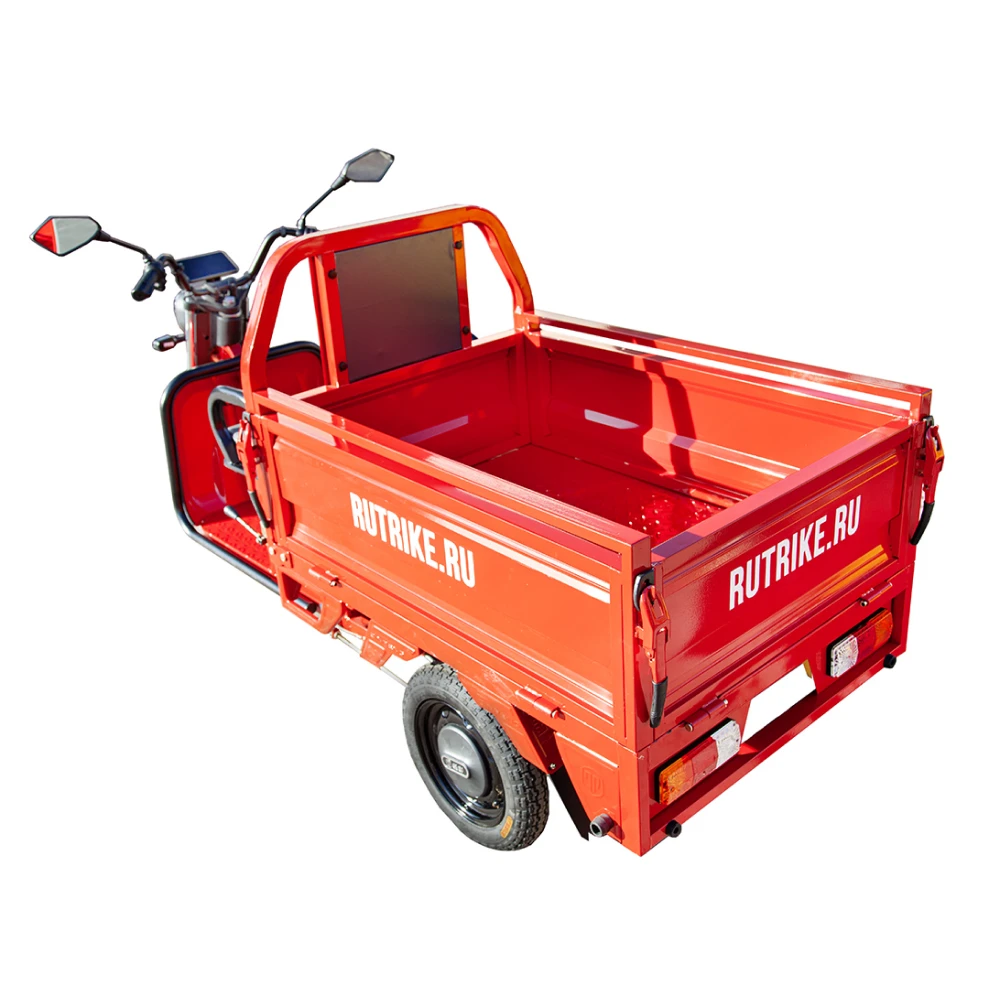 Грузовой электротрицикл Rutrike Амулет 1100 в ярком красном цвете - это надежное и эффективное средство для перевозки грузов. С его помощью вы сможете легко и удобно доставлять товары на небольшие расстояния.