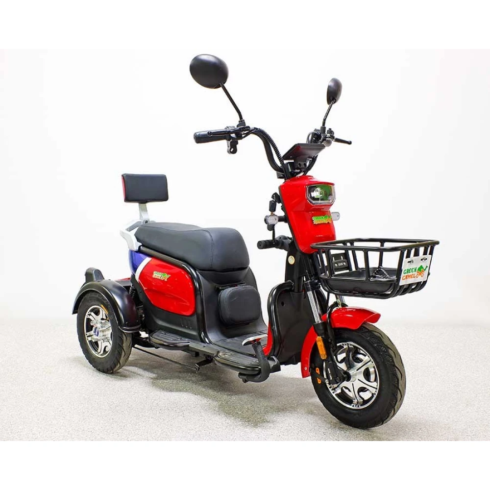 Трицикл GreenCamel Фродо Q2 (60V 500W) Trike дифференциал, красного цвета – стильная модель по приятной цене. Прочная конструкция трицикла рассчитана на максимальную грузоподъемность и подойдет для взрослых пользователей. Техника прекрасно подойдет для работы на садовом участке или перевозки грузов в складских помещениях, на ней приятно будет прокатиться по городской местности.