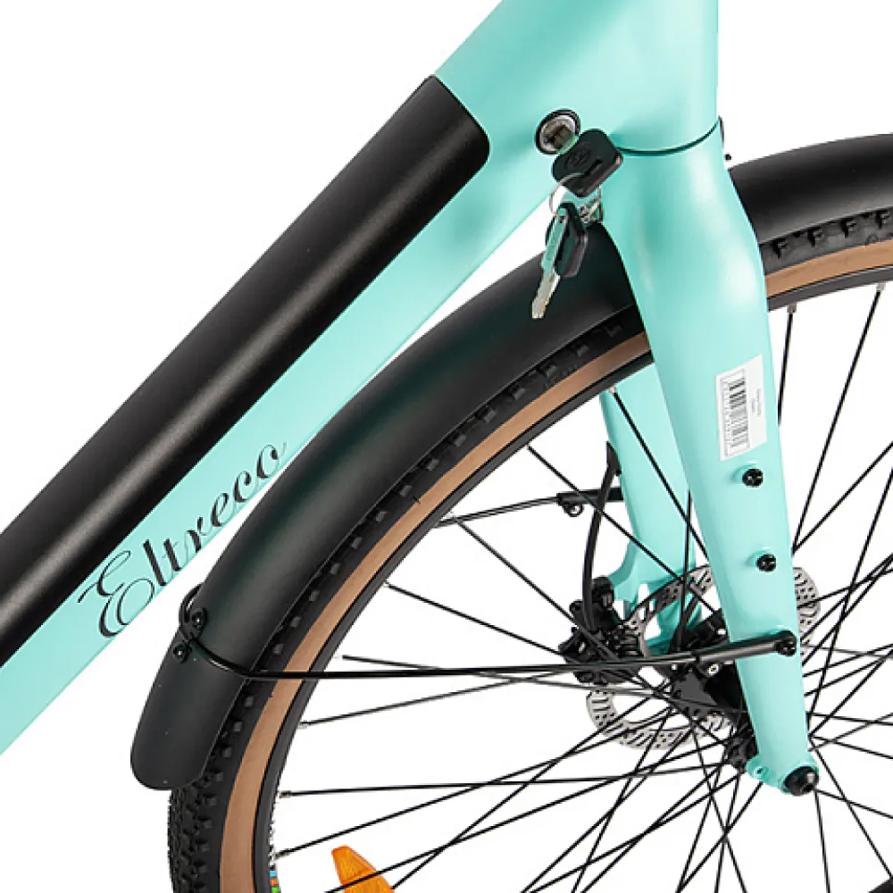 Eltreco Olymp оснащен гидравлическими дисковыми тормозами диаметром 160 мм, которые обеспечивают отличное торможение в любых условиях. Это обеспечивает безопасность и контроль во время езды.