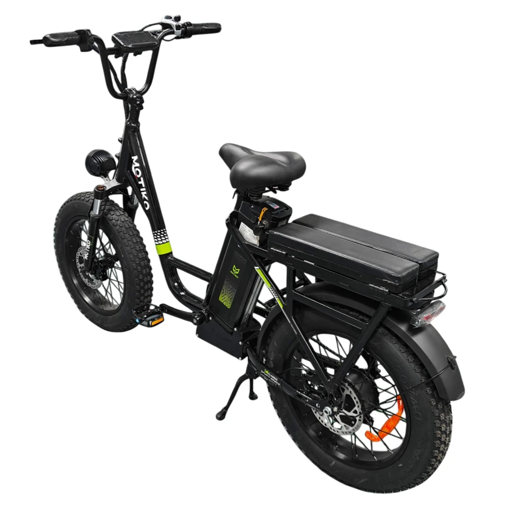 Motiko ME21 выделяется в линейке Motiko стальной рамой с пятью скоростями и компактными 20" колесами по сравнению с более тяжелыми моделями, что делает его маневренным для города. Преимущества над конкурентами (Eltreco, Green City): быстровыемный АКБ 48V 21 А·ч для удобства зарядки дома/на работе и дисковые тормоза за меньшую цену