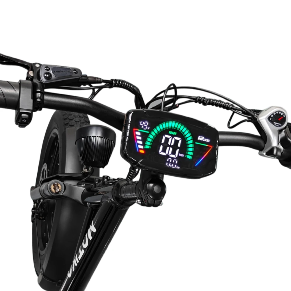 Мощность мотора 500 Вт (задний привод) обеспечивает уверенный разгон до 45 км/ч и подъем до 15–20° при 120 кг, но на неровностях или полной нагрузке падает до 30 км/ч без педального усиления. Li-ion аккумулятор 48V 21 А·ч, дисковые тормоза  эффективны сухими, слабее в дождь. Пять режимов (1–5 скорости, включая электро-поддержку) балансируют мощность: низкие — экономия заряда (+20–30% пробега), высокие — скорость; энергоэффективность 4–6 Вт·ч/км за счет педалей. Зарядка 8 часов стандартная, без быстрой, но съемный АКБ упрощает ротацию.