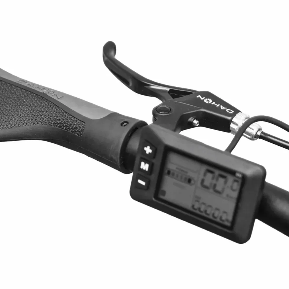 Алюминиевая рама обеспечивает лёгкость и прочность, руль 6061 Aluminum шириной 580 мм регулируется для комфорта, а подседельный штырь из алюминия фиксирует посадку. Аккумулятор Samsung 36V 9.5Ah даёт энергоэффективность благодаря литиевым ячейкам, влияющим на пробег до 40-50 км в эко-режиме (реальная дальность: 30-40 км в смешанном, 20-25 км на подъёмах или полной нагрузке). Механические дисковые тормоза DAHON и мотор 250W справляются с горками до 15% уклона и неровностями; режимы езды (Eco, Drive, Sport, если предусмотрены) регулируют скорость до 25 км/ч, повышая эффективность на 15-20% в эко. Быстрая зарядка отсутствует, стандартная — 4-6 часов с эффективностью 90%.