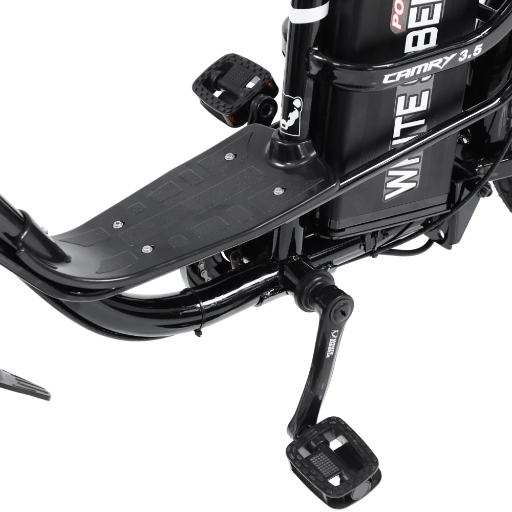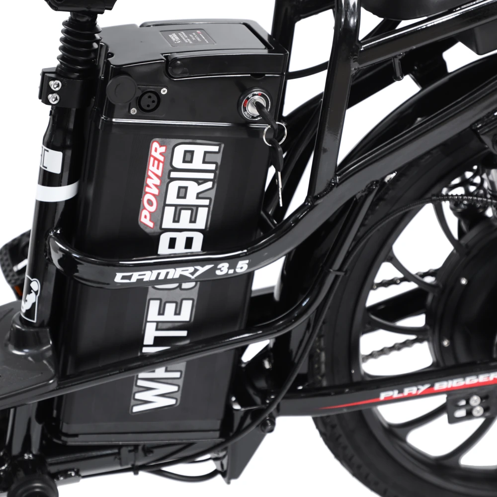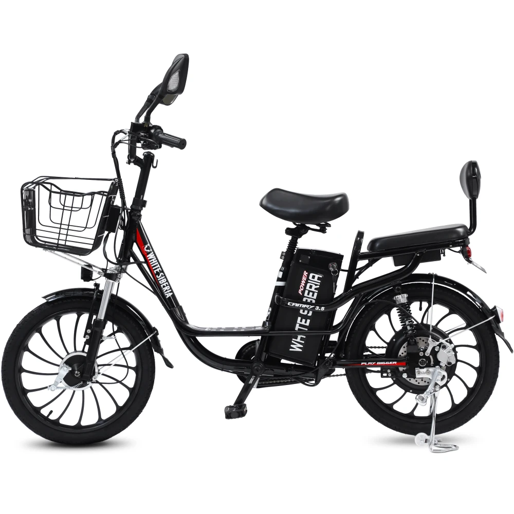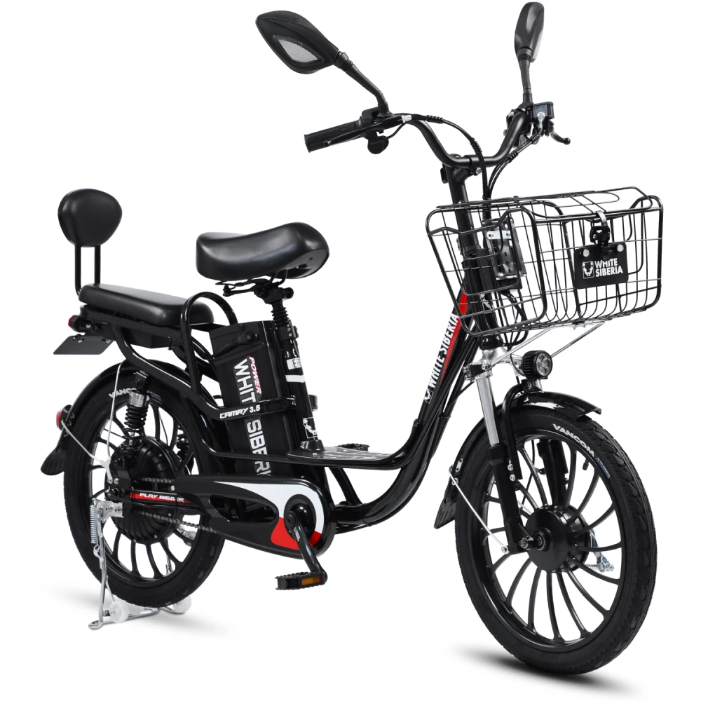 Электровелосипед WHITE SIBERIA CAMRY 3.5 1200W это новинка один лучших велосипедов разработанный по европейским стандартам от производителя white siberia. Это топовая модель электровелосипеда отлично подходит для повседневного использования, также отлично подойдет для курьеров. Электровелосипед camry 3.5 сочетает в себе мощность, стиль, комфорт и безопасность. Мощность двигателя на модели camry 3.5 составляет 1200W, который разгоняется до 45км/ч. Также электровелосипед оснащен вторым комфортным, съёмным сидением, что позволит кататься с комфортом. Максимальная нагрузка на модель составляет до 200 кг, при своём весе всего в 45 кг. Запас хода у электрвелосипеда camry 3.5 состовляет до 60 км, при этом заряжается он всего за 5-6 ч. Также модель имеет качественные LED фары, которые ярко освещают дорогу в темное время суток. Электровелосипед camry имеет задний привод, для более удобного вождения. Купить Электровелосипед white siberia 3.5 1200W по выгодной цене, а также аксессуары для вашего велосипеда можно на нашем официальном сайте интернет-магазина.