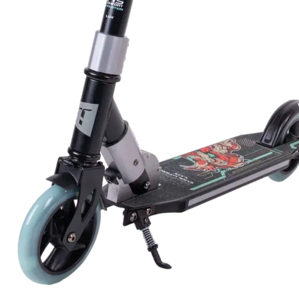 Самокат Tech Team Comfort 145 Lux Evolution 2024 черный – это сочетание стиля, функциональности и высокого качества. С весом в 3.75 кг, он идеально подходит для активных детей. Диаметр колес 145х30 мм с подсветкой обеспечивает плавное и безопасное катание. черная рама и грисы подчеркивают стильный дизайн, а бирюзовые колеса добавляют яркость. Складная конструкция позволяет легко хранить и переносить самокат. На деке изображен демонический красный тигр, что придает самокату индивидуальный характер. Встроенная подсветка деки, отличительная черта Lux версии, делает катание еще более увлекательным и заметным. Подшипники ABEC 7 обеспечивают плавное скольжение, а регулируемая высота руля (82-91 см) подходит для детей от 5 лет и роста от 110 см. Этот самокат – это не только средство передвижения, но и выразительный аксессуар для молодых и смелых райдеров.