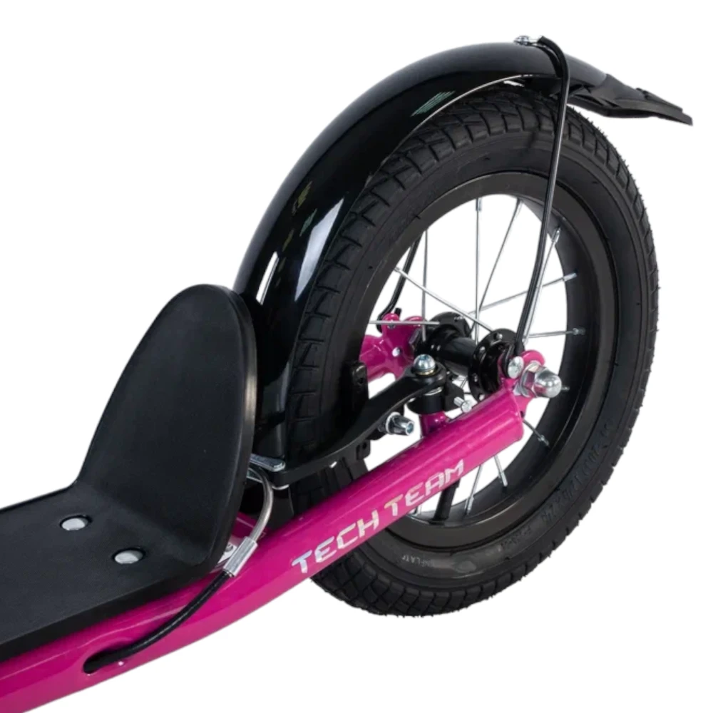 Tech Team Super Jet 700 2024 года в ярком розовом цвете - это городской самокат с уникальным дизайном, напоминающим велосипед. Большое переднее колесо диаметром 406 мм и заднее колесо диаметром 305 мм обеспечивают отличную устойчивость и комфорт при езде. Ободные тормоза и велосипедный руль с двумя ручками тормоза обеспечивают надежное торможение и удобное управление. Максимальная нагрузка до 100 кг позволяет использовать самокат людям разного веса. Рама из алюминия делает самокат легким и прочным, его вес составляет всего 8,1 кг. Этот самокат идеально подходит для активных городских поездок.