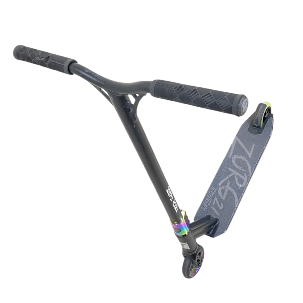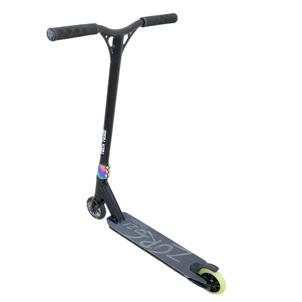 Трюковой самокат Tech Team Comrade - это идеальный выбор для начинающих и опытных райдеров, стремящихся к новым достижениям в мире трюков и катания. С высотой руля от деки в 590 мм, он обеспечивает удобную посадку для наездников ростом от 120 до 165 см. Конструкция самоката выполнена из прочного алюминия ALU 6061, что гарантирует надежность и долговечность. Самокат оснащен высококлассными подшипниками ABEC 7 Carbon, которые обеспечивают плавный и быстрый катание. Его вес всего 3,35 кг делает его легким и маневренным, а максимальная нагрузка до 100 кг позволяет использовать его как подросткам, так и взрослым. С диаметром колес 110 мм и материалом из полиуретана, самокат обеспечивает отличное сцепление и комфорт при катании. Задний ножной тормоз обеспечивает надежное торможение, в то время как система компрессии HIC позволяет легко выполнять трюки. Размер деки составляет 510 мм в длину и 115 мм в ширину, что обеспечивает достаточное пространство для ног. Ширина руля в 540 мм добавляет стабильности во время выполнения трюков. Обратите внимание, что самокат не складной, что делает его более прочным и надежным для активного катания. Tech Team Comrade — это самокат, который вдохновит вас на новые свершения! Самокат использовался в тест-драйве, поэтому имеет царапины на корпусе, которые не влияют на его техническое состояние. Это идеальный выбор для тех, кто хочет попробовать свои силы в трюковом катании без больших затрат.