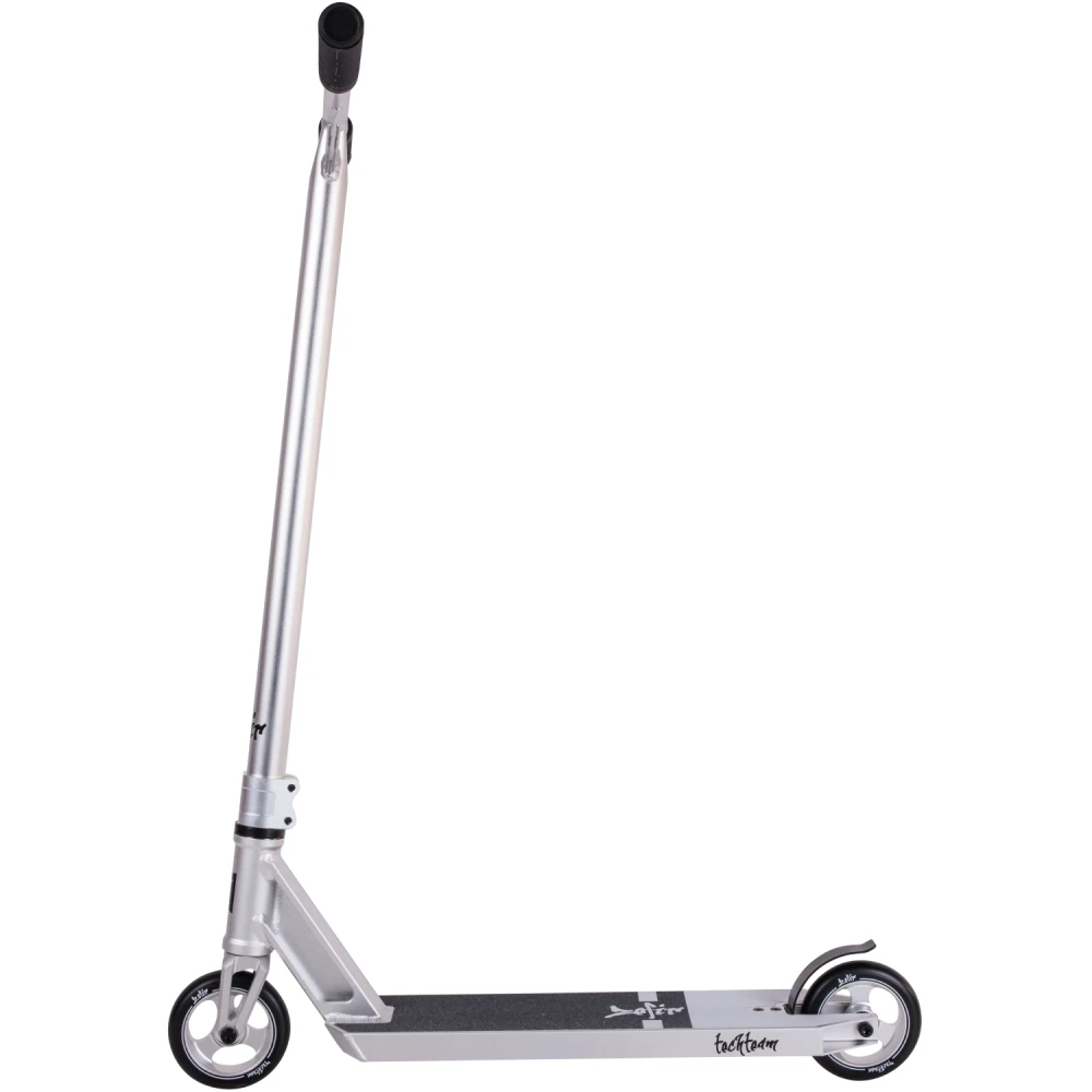 Трюковой самокат tech team Zefir 2023 Черный – лучшее предложение этого года. Модель изготовлена с учетом пожеланий трюкачей. Выглядит стильно, современно. Техническая часть выдерживает максимальные нагрузки без последующей деформации, обещает максимальный разгон и лучшее маневрирование. Приобрести самокат по цене производителя, воспользоваться бесплатной консультационной поддержкой предлагает наш интернет-магазин. Рулевая часть изготовлена из алюминиевого сплава 7003 с термообработкой T6, послушная и прочная, предназначена для выполнения трюков любого класса сложности. Соединяется с декой с помощью компрессии IHC и двухболтовыми зажимами. Прорезиненные грипсы повторяют анатомическое строение руки, увеличивают хват и уверенность пользователя, исключают соскальзывание рук и дискомфорт. Дека размерами 52 смх12 см – нескользящая, обеспечивает максимальную устойчивость стоп при выполнении прыжков. 110мм колеса с алюминиевыми дисками и параметрами жесткости 88А обещают отличный разгон. Приобретение самоката никого не оставит равнодушными, насытит жизнь адреналином, улучшит спортивные результаты. Для заказа самоката по разумной стоимости сейчас предлагаем связаться с менеджером интернет-магазина онлайн или по телефону.