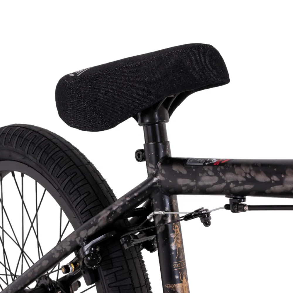 Угол подседельной трубы 71 градусов и высота каретки 11,3" создают оптимальную геометрию для комфортного катания и выполнения трюков. Каретка рулевая на промышленных подшипниках гарантирует плавное управление, а обновленные дропауты 14мм обеспечивают надежную фиксацию колес. Выберг вилки 25мм и угол рулевого стакана 76 градусов добавляют стабильности и точности при маневрировании.