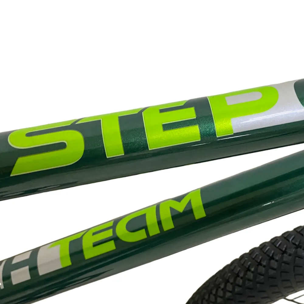 Встречайте зеленый BMX Tech Team STEP ONE 2024 – ваш новый спутник для трюков и экстремальных поездок. С прочной стальной рамой 18.7" и усовершенствованной геометрией заднего треугольника, этот велосипед обещает отличную устойчивость и маневренность. Стальной руль длиной 600 мм и алюминиевый вынос front load 50 мм обеспечивают надежное управление. Система с 36 зубьями и шатуны длиной 140 мм, пластиковые педали и цепь P410 делают этот велосипед легким и удобным в эксплуатации. Алюминиевые V-brake тормоза гарантируют безопасность, а стальные втулки на насыпных подшипниках и алюминиевые обода добавляют долговечности. Завершает все это удобное BMX седло, широкие покрышки 20" X 2.35 и четыре пеги для выполнения самых сложных трюков.