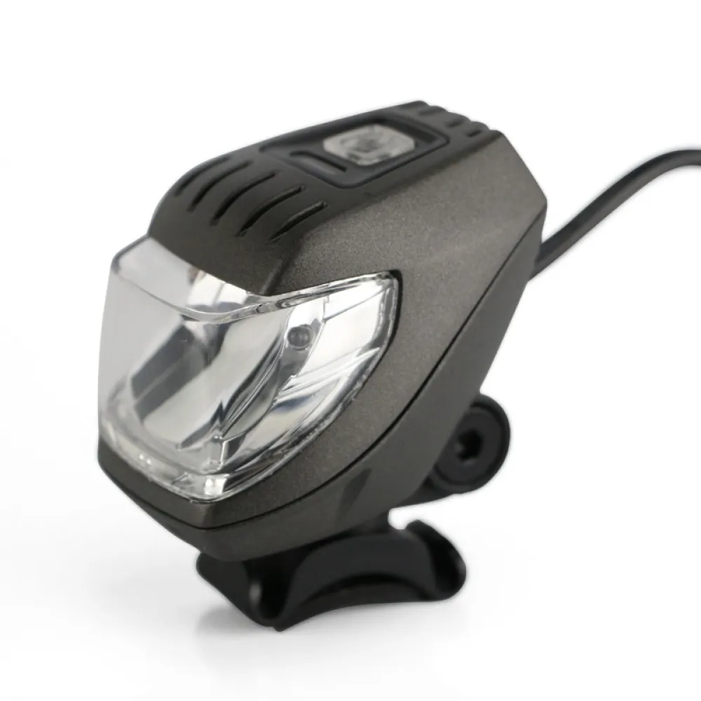 Питается от батареи электро велосипеда. Имеет при этом чёткую светотеневую границу, что не позволяет ослеплять встречный поток, и равномерное освещение.
