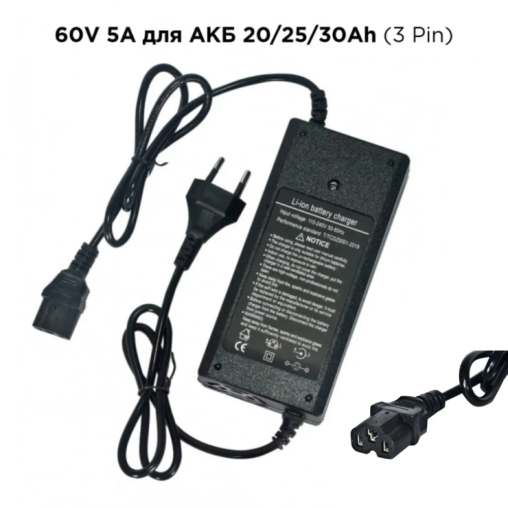 Зарядное устройство 60V 5А для АКБ 20/25/30Ah (3 Pin) – качественный товар понравился райдерам своим компактным размером. Изделие имеет небольшой вес и рассчитано на то, что пользователь может с легкостью взять с собой в путешествие. Современная отделка зарядного устройства полностью завершает образ успешного человека. Аксессуар имеет высокие технические показатели и позволяет эксплуатировать от бытовой розетки. Качественные разъемы рассчитаны на простое подключение в максимально короткие сроки. Надеемся вам понравился товар. Предлагаем перейти к оформлению заказа, связавшись с нашим менеджером.